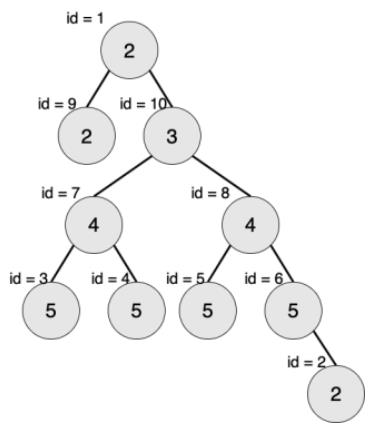 下图中节点内的数字为权值,节点外的id表示节点编号。